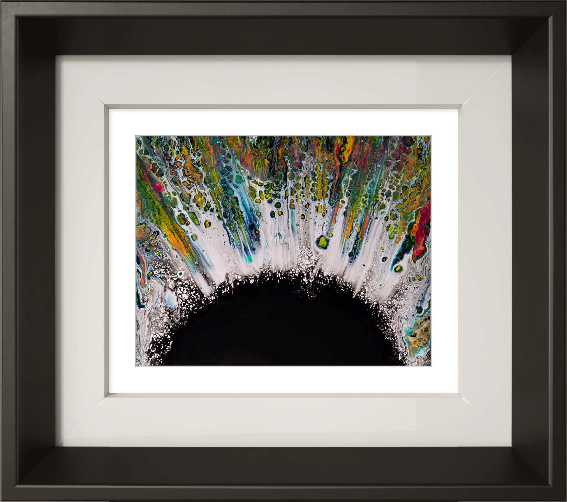 Experience the cosmic eye in this vibrant abstract artwork, where fluid colors and dynamic textures burst forth against a deep black backdrop. This piece invites exploration and conversation, making it a striking addition to any space that seeks to inspire creativity and wonder.