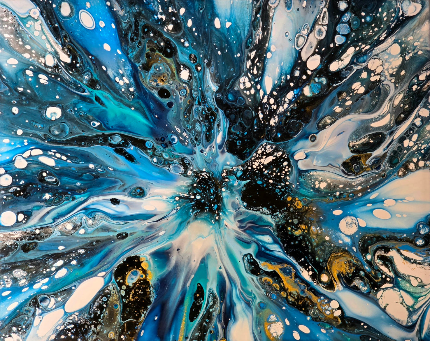 Experience the depths of the blue abyss in this abstract artwork. The swirling textures and fluid movement create a mesmerizing visual journey, inviting contemplation. This piece adds a striking focal point to any space, enhancing your environment with its unique energy and captivating allure.